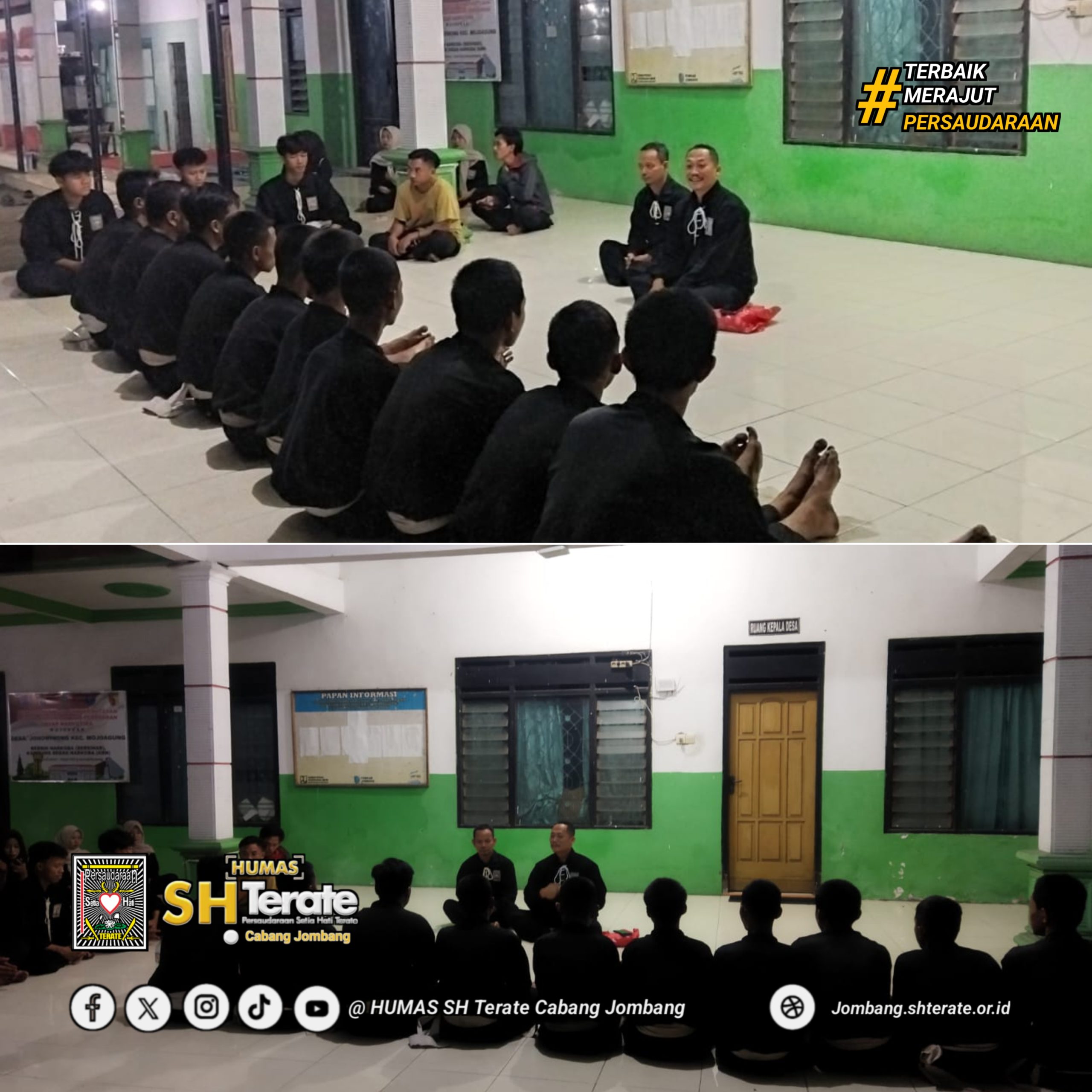 Latihan bersama kali ini di hadiri oleh Kangmas Sarmin, S.E, selaku Anggota Dewan Cabang Persaudaraan Setia Hati Terate ( PSHT ) Cabang Jombang – Pusat Madiun, Mas Mukhlis selaku ketua ranting, jajaran pengurus ranting, para koordinator rayon, serta para pelatih.